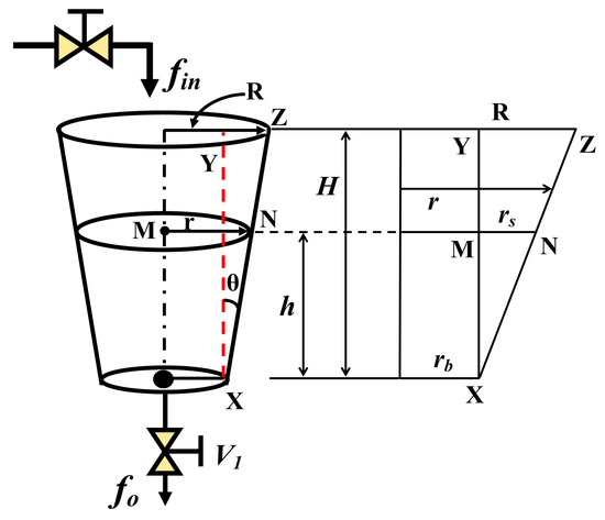 We begin by looking into the single frustum tank system (FTS) illustrated in Figure 4 to derive the mathematical model for the TTCFNLC process.