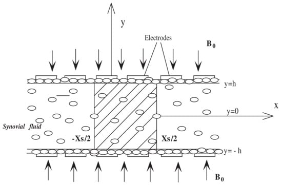 - A 2D, electrically conducting, viscous and incompressible synovial fluid is considered.