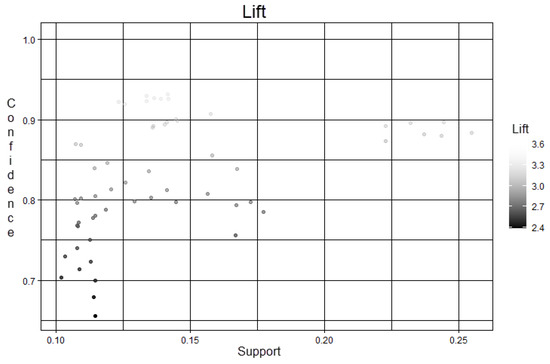 - Hahsler, M. A Probabilistic Comparison of Commonly Used Interest Measures for Association Rules. Available online: https://mhahsler.github.io/arules/docs/measures (accessed on 15 March 2023).