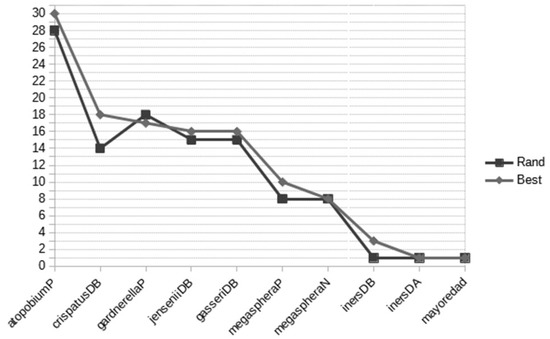 The elements frequently found in the antecedent of the rules of both variants are atopobiumP, crispatusDB, gardnerellaP, jenseniiDB, gasseriDB, megasphaeraP, megasphaeraN, inersDB, inersDA, and mayoredad. The details are shown in Figure 8.