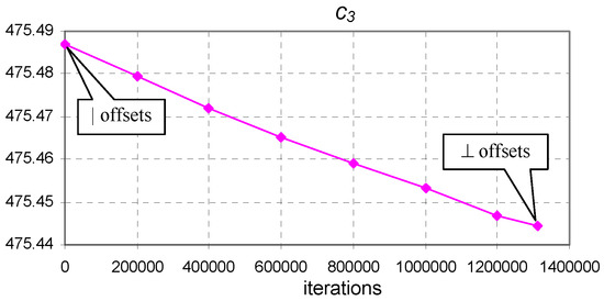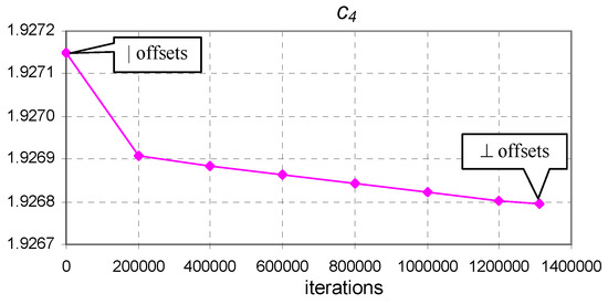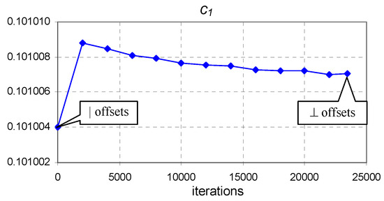 The final values of the coefficients of are nearly identical to the initial values provided by vertical offsets. The evolution of the parameters is depicted, for convenience, in Figure 8, Figure 9 and Figure 10.