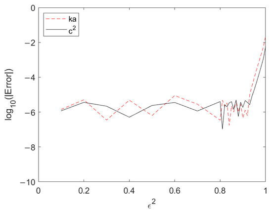 By the same values of ε2 in Cokelet [14], the differences between the present results and Cokelet [14] are indicated in Figure 3. The vertical axis of Figure 3 indicates the common logarithm of the absolute error between both results. The common logarithm being lower than −5 directs the error to the six-decimal digit. The common logarithms of ka and c2 greater than −5 occur after ε2 = 0.93 and 0.94, respectively. However, the common logarithms of other physical properties also greater than −5 occur together after ε2 = 0.80.