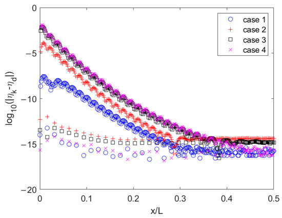The other main error source in the FSA is the global error of Simpson’s 1/3 rule, which is used to obtain the mean water level by integrating nonlinear surface elevations over half a wavelength, as expressed in Equation (10). The difference between the integration of a function and its approximation using the Simpson’s 1/3 rule can be estimated to be (see Gerald and Wheatley [57])