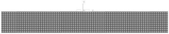 The elements employed within the FEM are depicted in Figure 6. This illustration exhibits the soil domain positioned beneath the structures, characterized by quadratic plain strain elements, while the structures themselves are represented by linear beam elements. The coordination of these domains is focused on the spatial region between the two structures, and the coordinate center is also displayed in Figure 6.