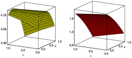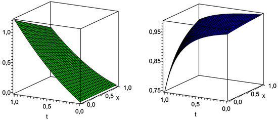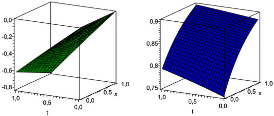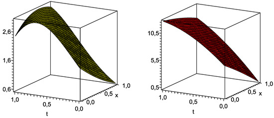 of the exact solution of the PDE system (7) with and , while other components of the corresponding solution are presented in Formulae (23)–(25).