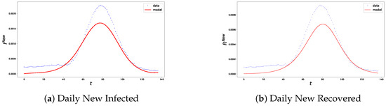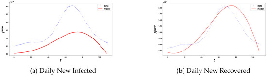 Figure 7 show data for new infected and new recovered, as well as comparisons between observed data and model predictions for both countries, Algeria and the USA.
