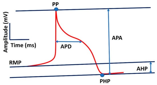 - Action potential duration (APD): The time required for the membrane potential to repolarize to 90% of its peak value, providing insight into the refractory period and overall duration of the AP.