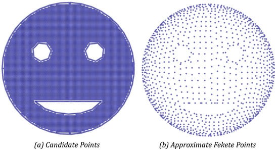 - Bendito, E.; Carmona, A.; Encinas, A.; Gesto, J. Estimation of Fekete points. J. Comput. Phys. 2007, 225, 2354–2376. [Google Scholar] [CrossRef]