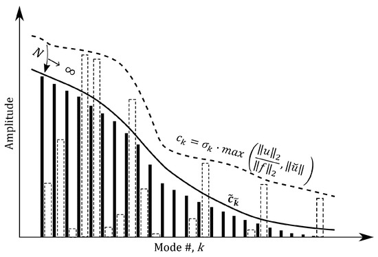 is always monotonically decreasing, and hence, so is (according to Equation (75)). Consequently, the Gram–Schmidt process always removes the component of u in , starting from large values and moving to smaller values. Therefore, according to Equation (69), the error for the permutation is always decreasing, which means that by increasing the polynomial order, N, in the following expansion: