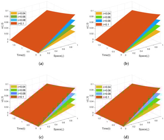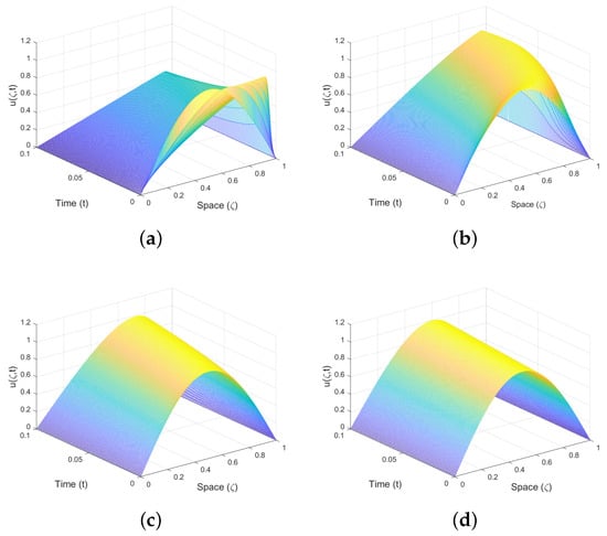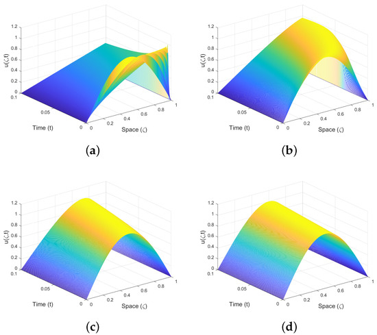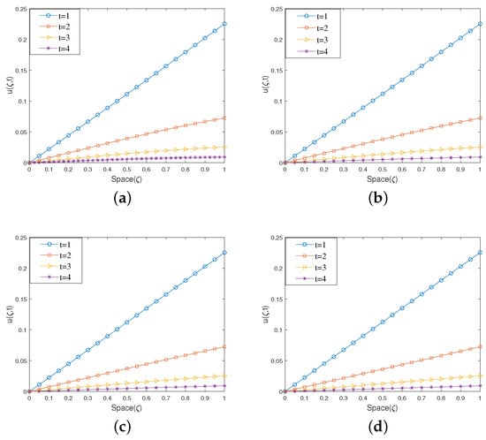 where C is the generic constant. Hence, the upper bound on is independent of the jth iteration, which shows that the proposed implicit scheme is unconditionally stable. □