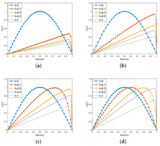The next step in the application of cubic Hermite splines on the proposed conformable damped Burgers’ equation is the choice of collocation points. In this study, the zeros of shifted Legendre polynomials have been taken as collocation points. The detailed study of collocation points is given in [21] and the details of Legendre polynomials are given in [68,69].