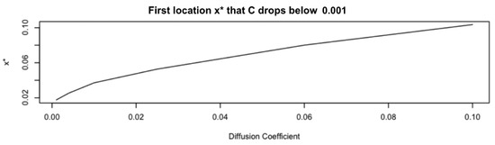 Section 2.4. In other applications, Danckwerts boundary conditions might be a better choice. These are of the type of Robin boundary conditions and reduce to Dirichlet boundary conditions for advection–reaction models, i.e., when the diffusion coefficient vanishes. That is, under such Danckwerts conditions, the advection–reaction model has the same solution as under Dirichlet conditions, but the advection–diffusion–reaction model does not. Specifically, both the inflow substrate concentration and the inflow concentration of suspended biomass differ from the values they attain in the advection–reaction model (i.e., the specified inflow concentration). This immediately leads to the conjecture that in systems with Danckwerts conditions, longitudinal diffusion should also not be neglected. The same rationale is applied to the generalized boundary condition proposed in [