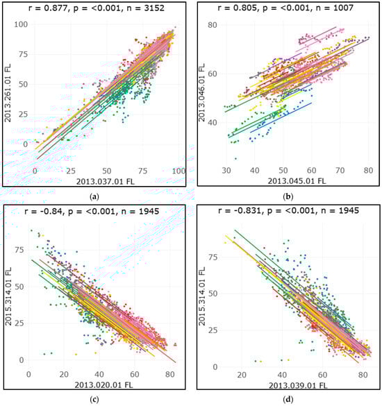 - Bakdash, J.Z.; Marusich, L.R. Repeated measures correlation. Front. Psychol. 2017, 8, 456. [Google Scholar] [CrossRef]