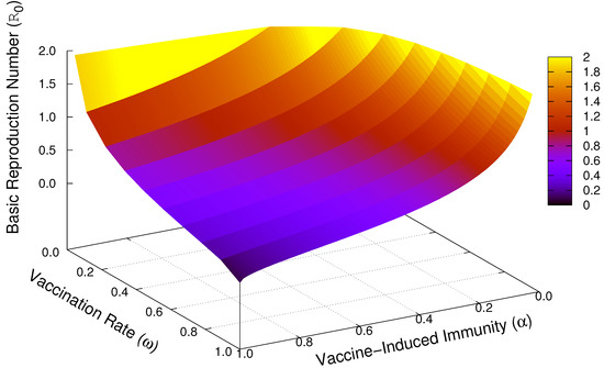 The 3D Contour plot of vs. vaccination rate and vaccine-induced immunity rate .