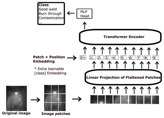 - Dosovitskiy, A.; Beyer, L.; Kolesnikov, A.; Weissenborn, D.; Zhai, X.; Unterthiner, T.; Dehghani, M.; Minderer, M.; Heigold, G.; Gelly, S.; et al. An Image is Worth 16x16 Words: Transformers for Image Recognition at Scale. In Proceedings of the ICLR 2021—9th International Conference on Learning Representations, Virtual, 3–7 May 2020. [Google Scholar]