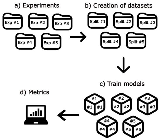 - Model testing: Evaluate each model in the test dataset, ensuring that the same evaluation process is applied in all experiments and folds.