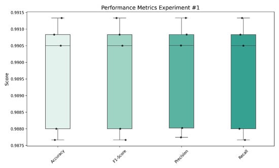 | Exp. #1—binary | 0.990 | 0.990 | 0.990 | 0.990 | 12,000 |