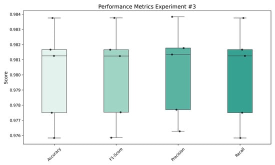 | Exp. #3 | 0.9725 | 0.9833 | 0.9833 | 0.9783 | 0.9833 | 0.9801 |