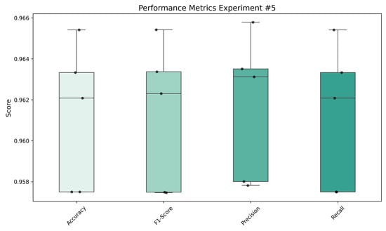 | Exp. #5—multiclass | 0.962 | 0.962 | 0.962 | 0.962 | 2400 |