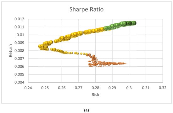 Building a portfolio is not a simple task today since several factors can influence the selection, integration, and weighting of the assets of the investment portfolio. That is why it requires robust and reliable tools which allow us to analyze many candidate assets and the data that integrate them. As we present in Section 1, the MPT model (Equations (1)–(4)), proposed by Markowitz, is the pioneering work in portfolio management which considers two main objectives: maximizing the expected return and minimizing the risk [3,52]. The Sharpe model represented by Equations (5)–(7) is an MPT extension considering the two objective functions in only one. In the present work, we propose a like-Markowitz Model of MASIP defined by Equations (8)–(12).
