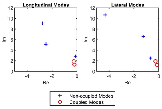 According to the classical flight dynamic model, all aircrafts in all flight conditions have a specific number of “traditional” flight modes. Under several limiting assumptions, including the rigidity of the aircraft, constant weight and moments of inertia, fixed center of gravity, symmetry of the aircraft, decoupling of the longitudinal and lateral/directional dynamics, and small disturbances concerning the steady-state flight conditions, the classical flight dynamic model extracts identical longitudinal (i.e., the phugoid and short period) and lateral/directional modes (i.e., roll, spiral, and Dutch roll). This model describes the aircraft’s motion through two sets of linear time-invariant ordinary differential equations for the longitudinal and lateral/directional dynamics. Accordingly, it is not surprising that both a general aviation airplane in the cruise phase and a jet fighter in a high angle of attack flight have similar modes from the classical point of view. The classical model works well for linear, non-coupled flight conditions. However, “non-traditional” modes can emerge in high angle of attack flights, rapid maneuvers, or due to aeroelasticity [1,2,3,4]. Since the classical flight dynamic model cannot comprehensively predict these phenomena, it is necessary to obtain all flight modes by new methods.