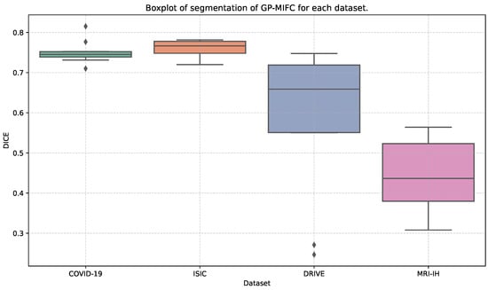 Boxplot of segmentation performance from GP-MIFC for each dataset.
