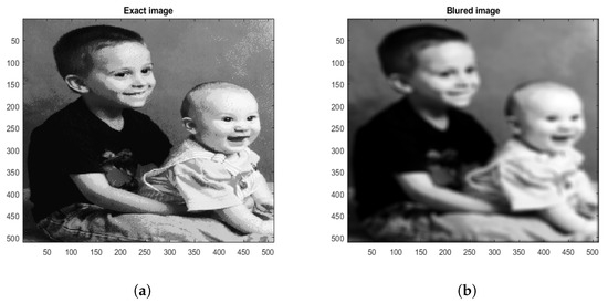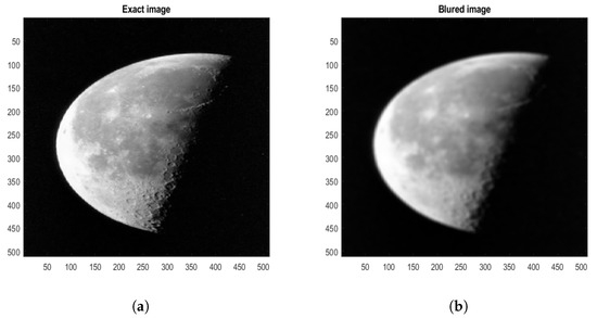 In this context, the noise inherent in the image is represented by . This noise can take on various forms, including Gaussian, Brownian, and salt-and-pepper noise [3,4,5]. Gaussian noise is a statistical noise characterized by a bell-shaped probability density function, often appearing in images due to sensor limitations or transmission errors. It is modeled as a normal distribution with mean zero and a certain standard deviation. Brownian noise, also known as random walk noise, is caused by random fluctuations in the intensity values, leading to a more erratic, continuous variation across the image. Salt-and-pepper noise, on the other hand, manifests as random occurrences of black and white pixels, resembling grains of salt and pepper. These types of noises are commonly found in blurred images. This type of noise typically results from sensor malfunction or transmission errors. Specifically, our research focuses on Gaussian noise. We define the blurring operator using a Fredholm integral of the first kind, which is expressed in the following manner: