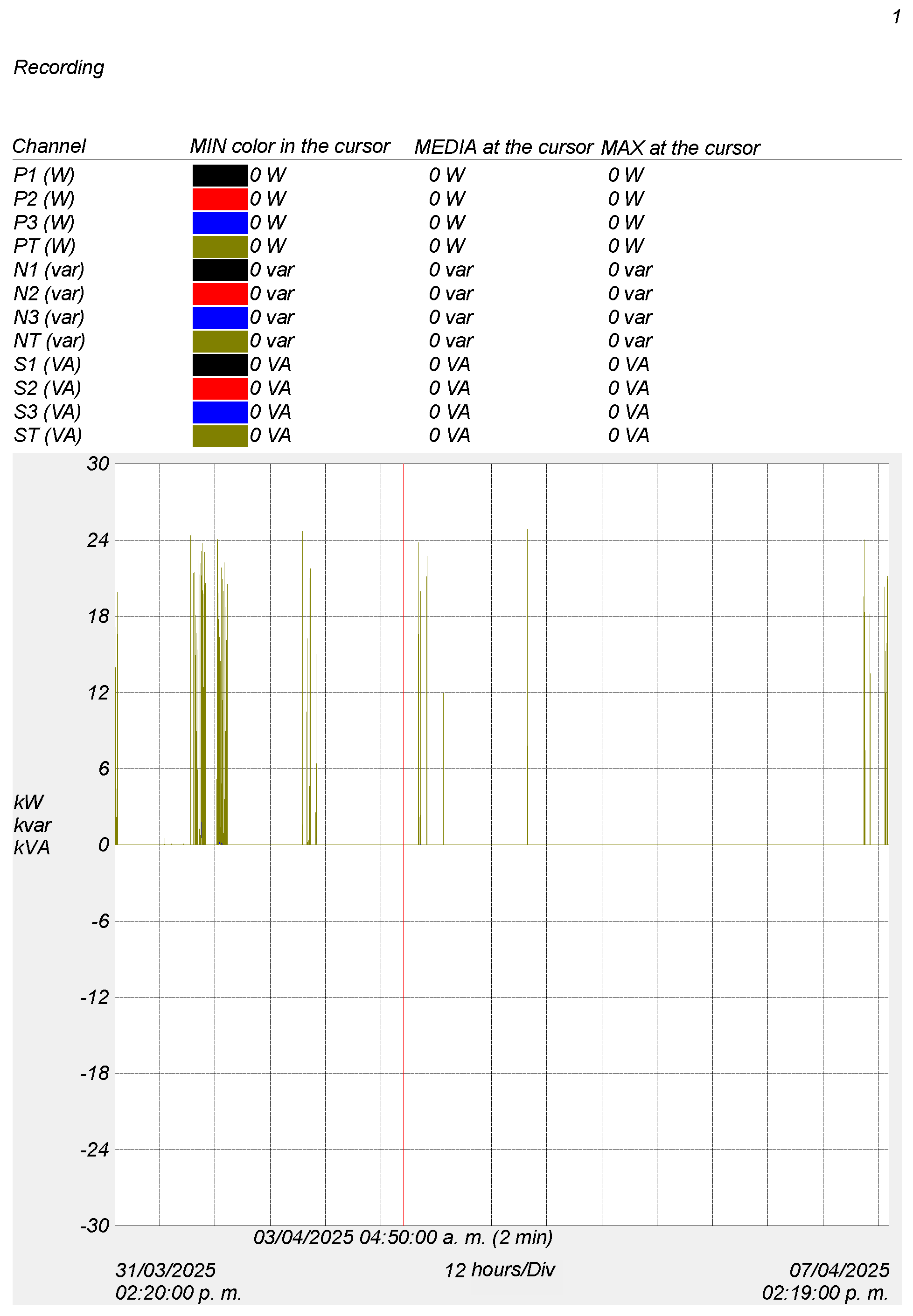 Consequently, the installation of a capacitor bank with an approximate capacity of 13 to 15 kVAr would enable the correction of the power factor to levels between 0.95 and 0.97, thereby reducing the demand for reactive power, improving the overall energy efficiency of the system, and avoiding tariff surcharges. It is important to note that the calculation of the required capacitor bank size is based on a one-week data period, which provides a representative estimate for immediate operating conditions. However, due to potential seasonal and long-term variations in the system’s demand, it is recommended to consider additional analysis with a longer data period to ensure the long-term representativeness of the proposed design.