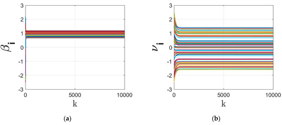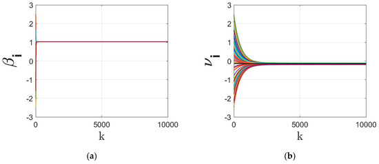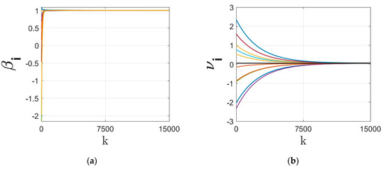 where as the step-rate and as the stochastic adjacency weight matrix (a matrix is called stochastic if for every we have .), denotes the neighboring set of node/agent , and denote the state values at nodes . It is known that, under certain conditions, the solution of this dynamics asymptotically converges to the agreement/consensus state. On the other hand, finite-time consensus protocols [16,48] improve the convergence rate of the linear dynamics (1) in the region by adding signum-based function as follows: