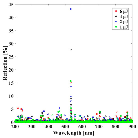 Experimental reflectance spectra of the studied non-focused seed, as a function of laser energy.
