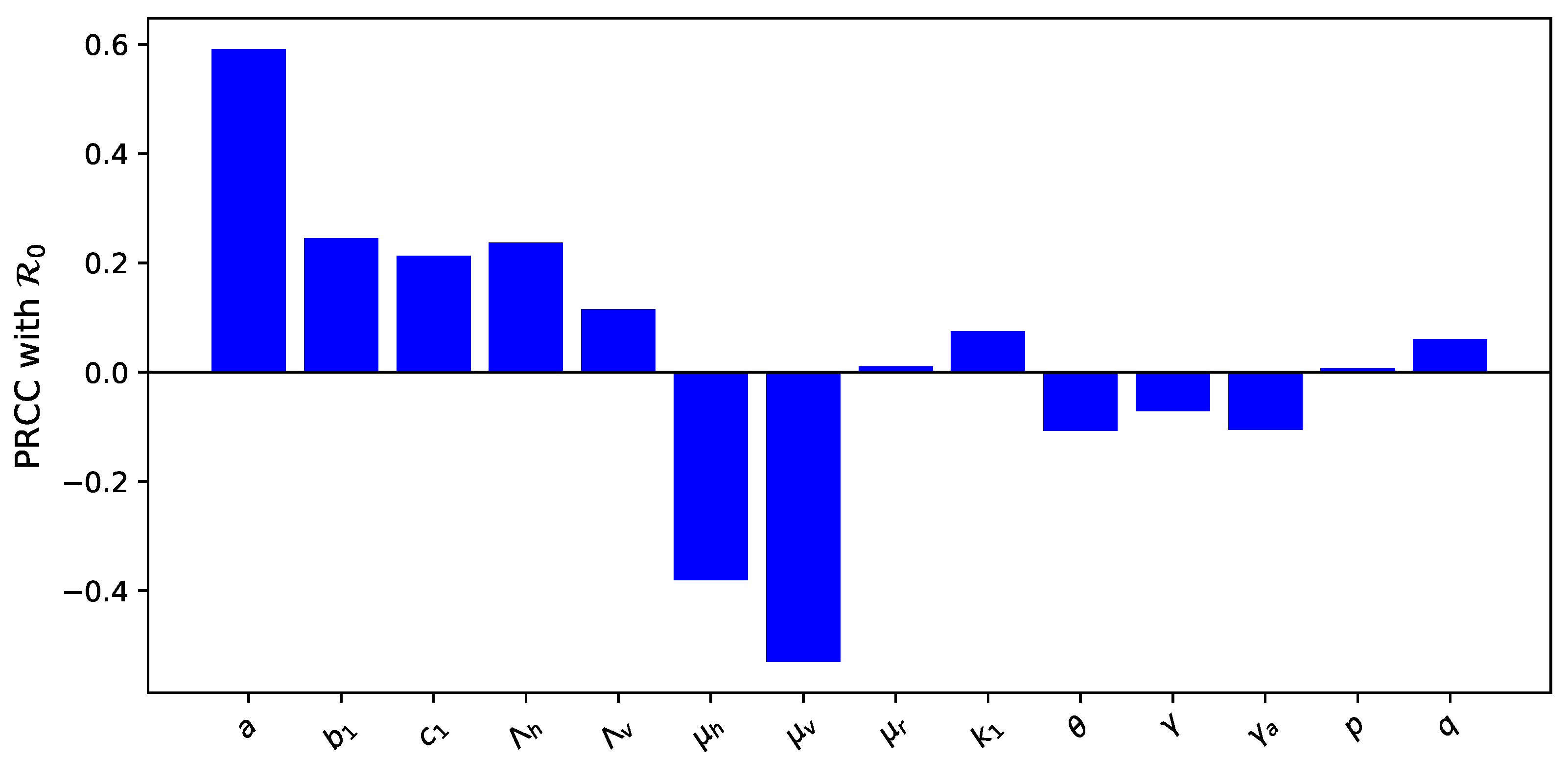 Table 3. PRCC values of the model parameters with respect to R 0 .