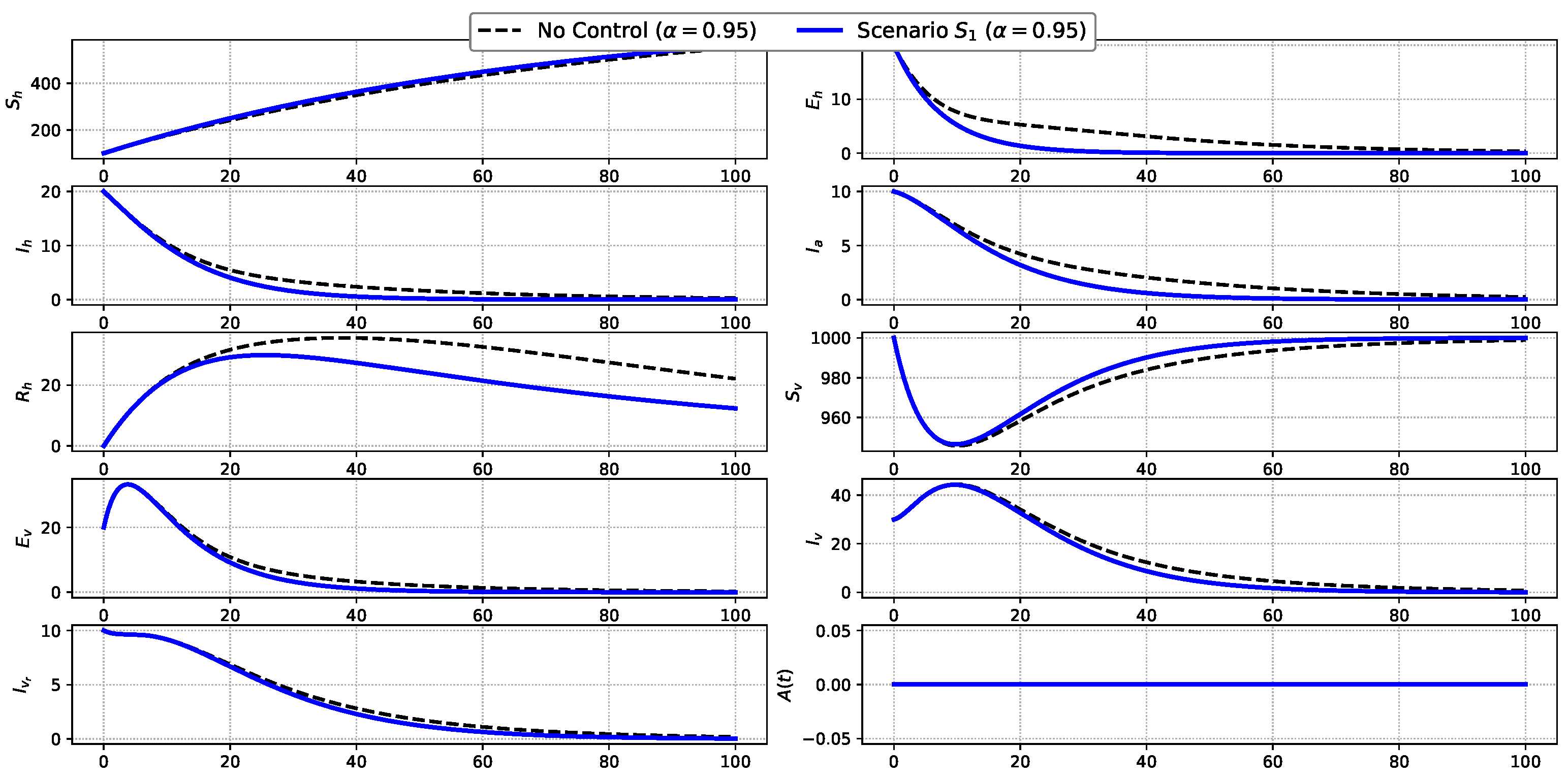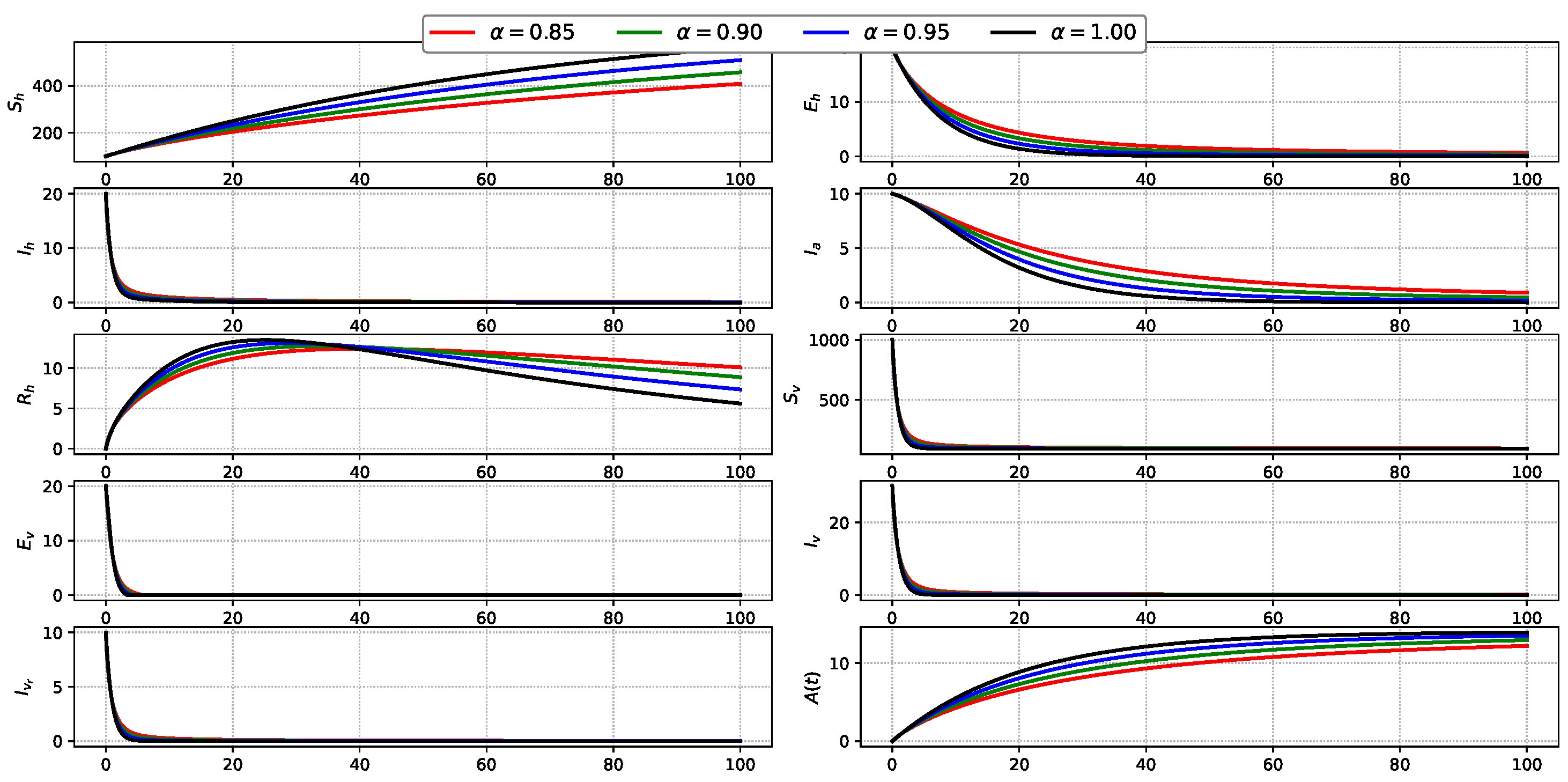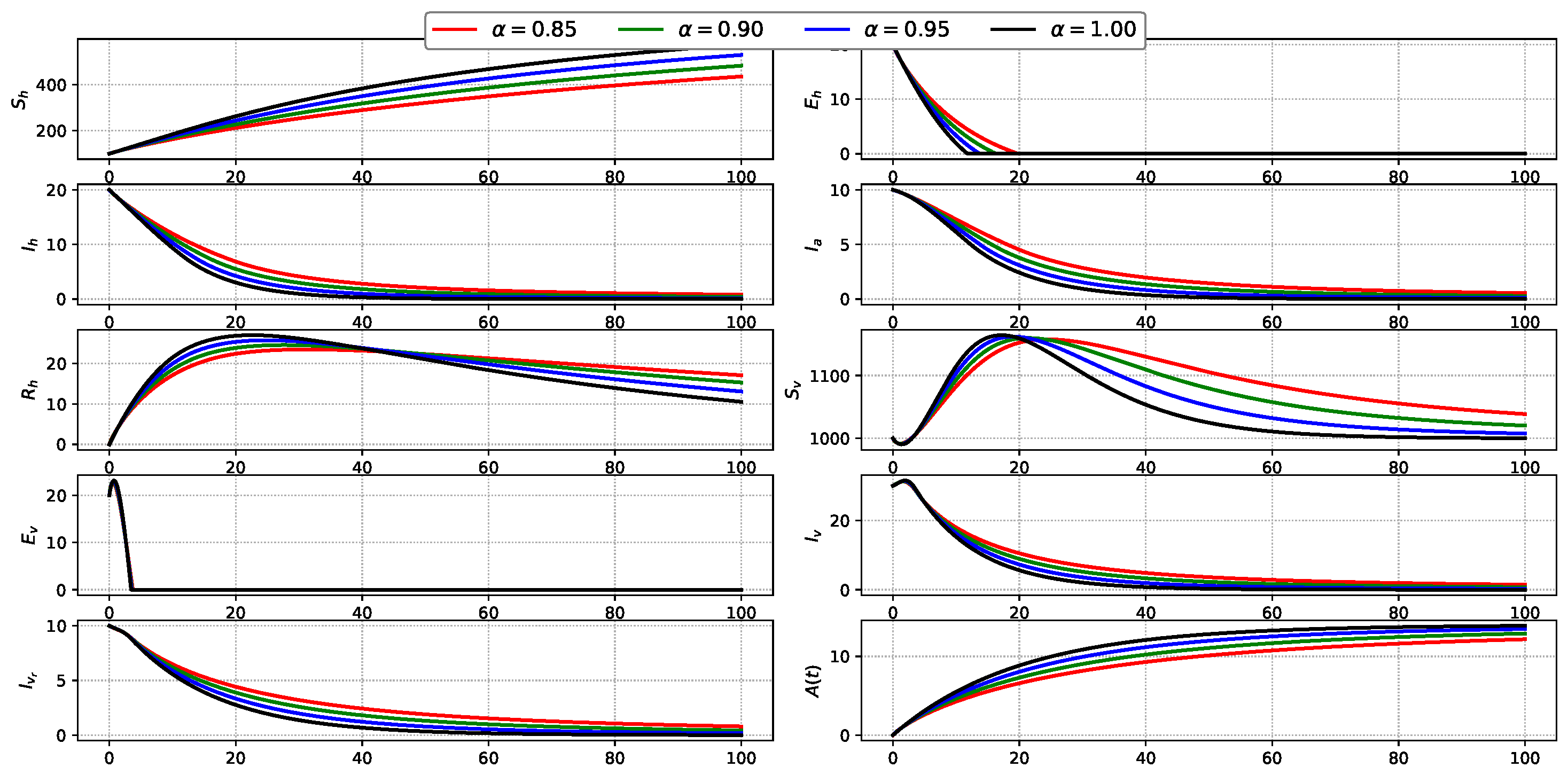 X ( t ) = ( S h , E h , I h , I a , R h , S v , E v , I v , I v r , A ) ,