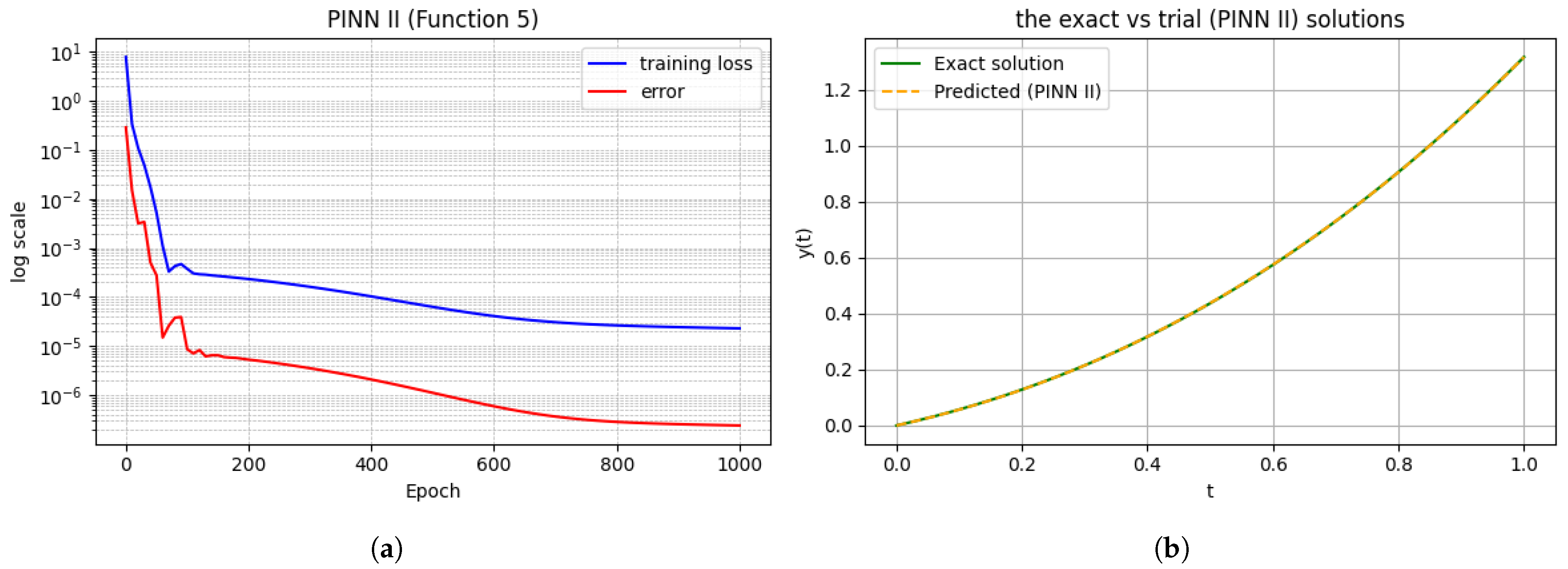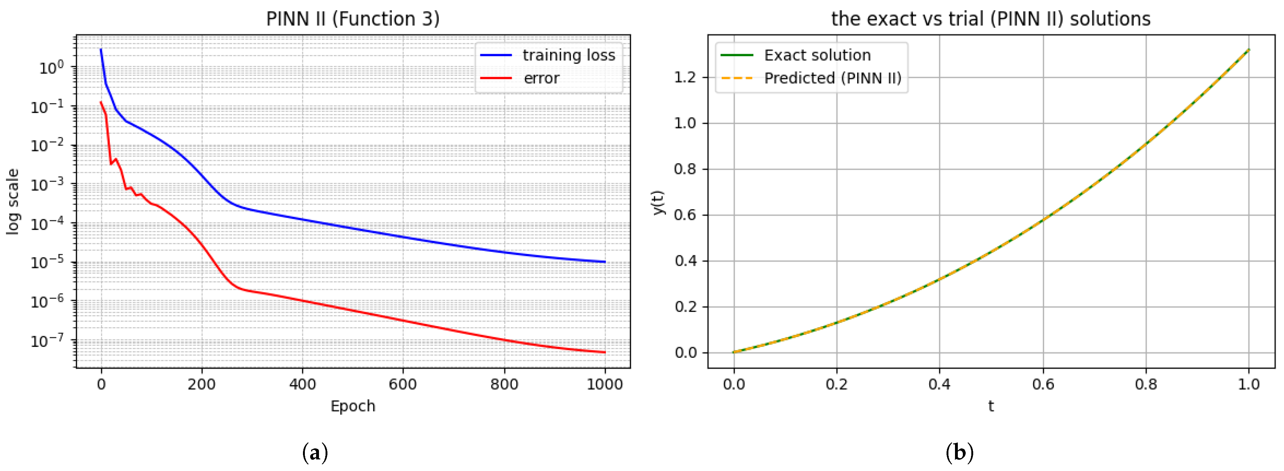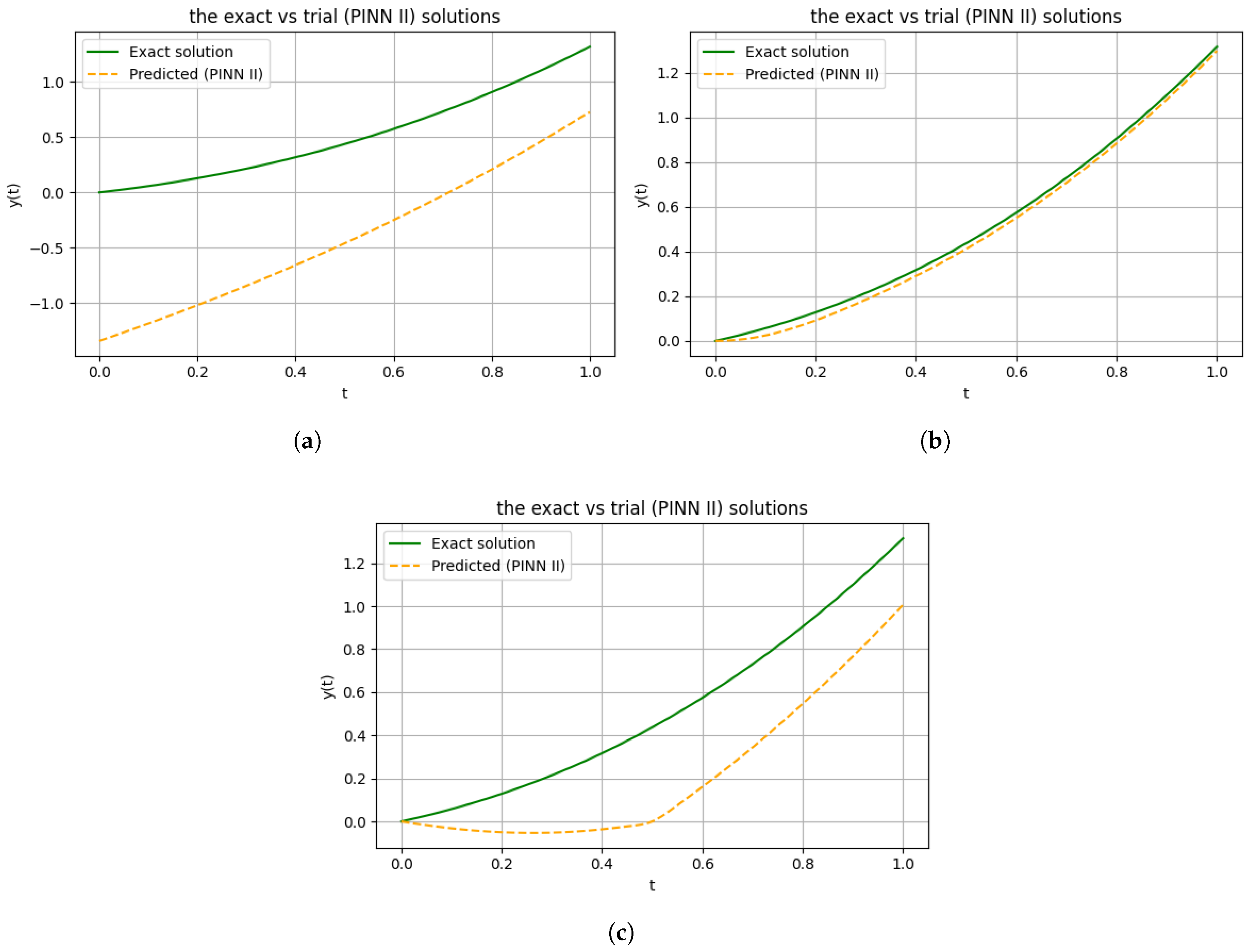 19]. Building on these insights, the present work contributes to this evolving landscape by combining rigorous error estimates with an enhanced PINN formulation that employs generalized trial solutions for ODEs. Our approach aims to ensure that the PINN exactly satisfies the problem’s initial conditions (removing penalty-induced errors) while providing theoretical guarantees on the solution error. This fusion of improved trial function design with provable error bounds addresses some of the key limitations identified in prior works, moving one step closer to reliable and efficient physics-informed neural network solvers for ODEs.