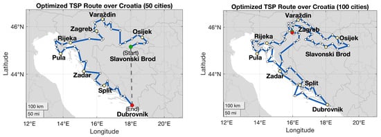 The datasets used in this study, the Croatia 50- and 100-City TSP EUC2D and GEO TSPLIB-compliant maps, are publicly available on Zenodo: https://doi.org/10.5281/zenodo.17587540 (accessed on 22 October 2025).