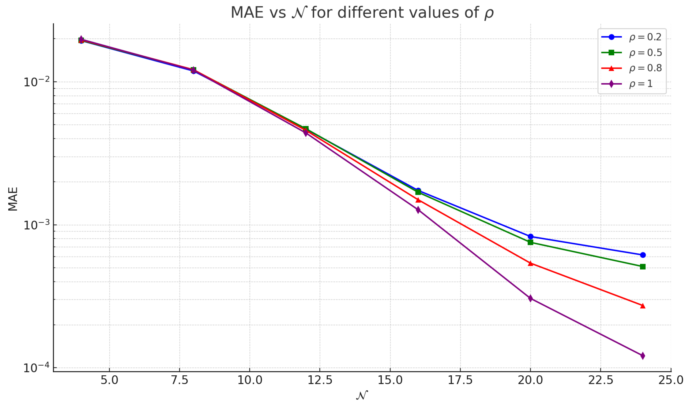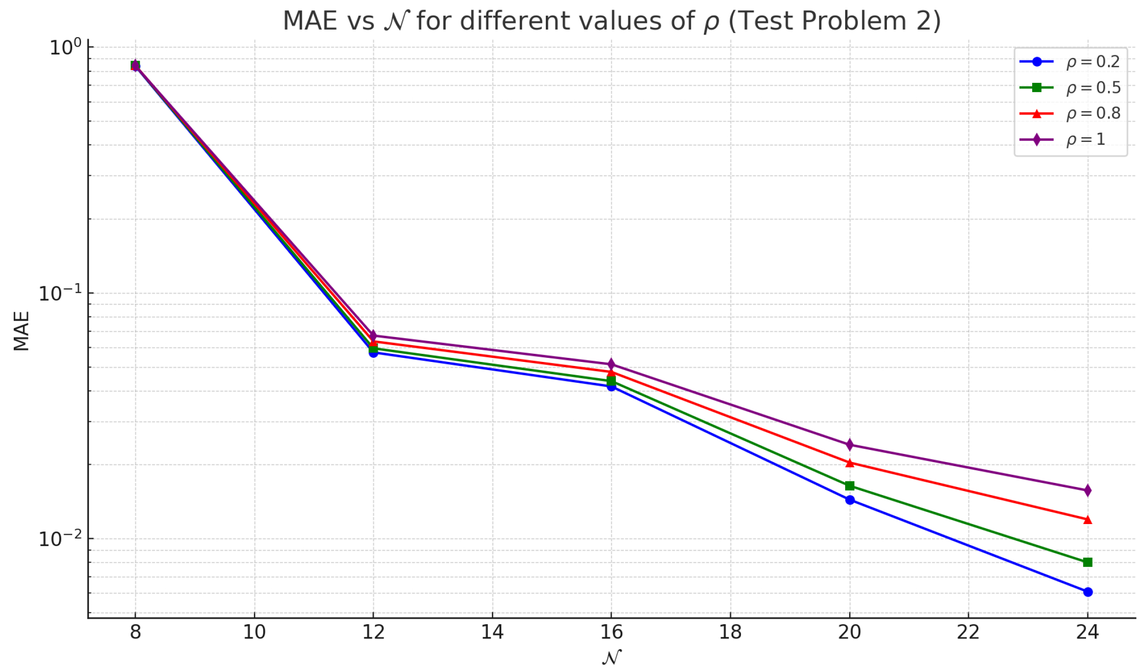. The accuracy of the approach is quantitatively assessed using mean MAEs and RMSEs, both of which consistently decline as the grid becomes finer, indicating strong convergence behavior. While the method remains stable and reliable for all considered values of