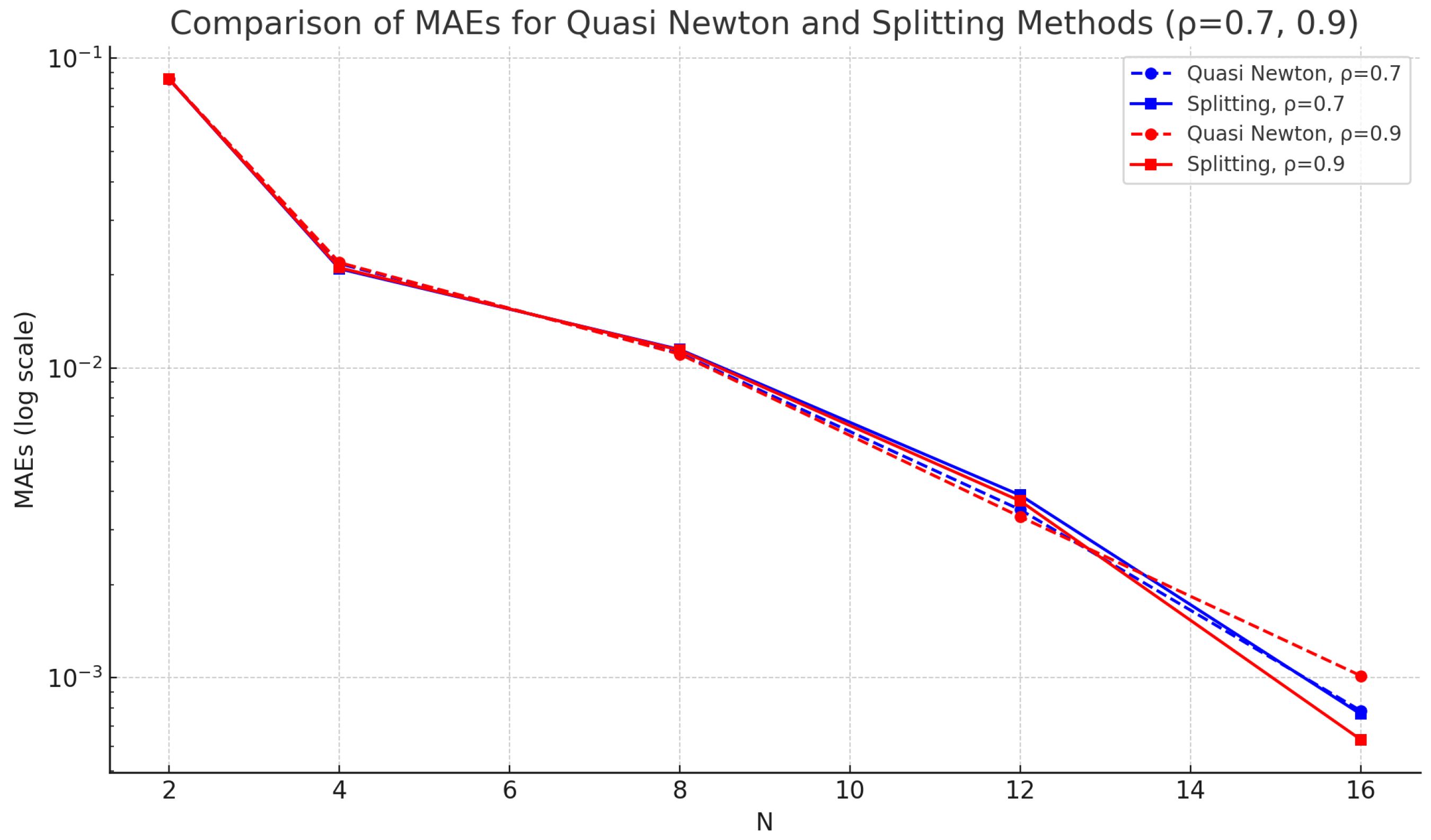 , including MAEs and RMSEs. As expected, errors decrease as the grid is refined, demonstrating the precision and convergence of the proposed numerical approach. To further illustrate how fractional order