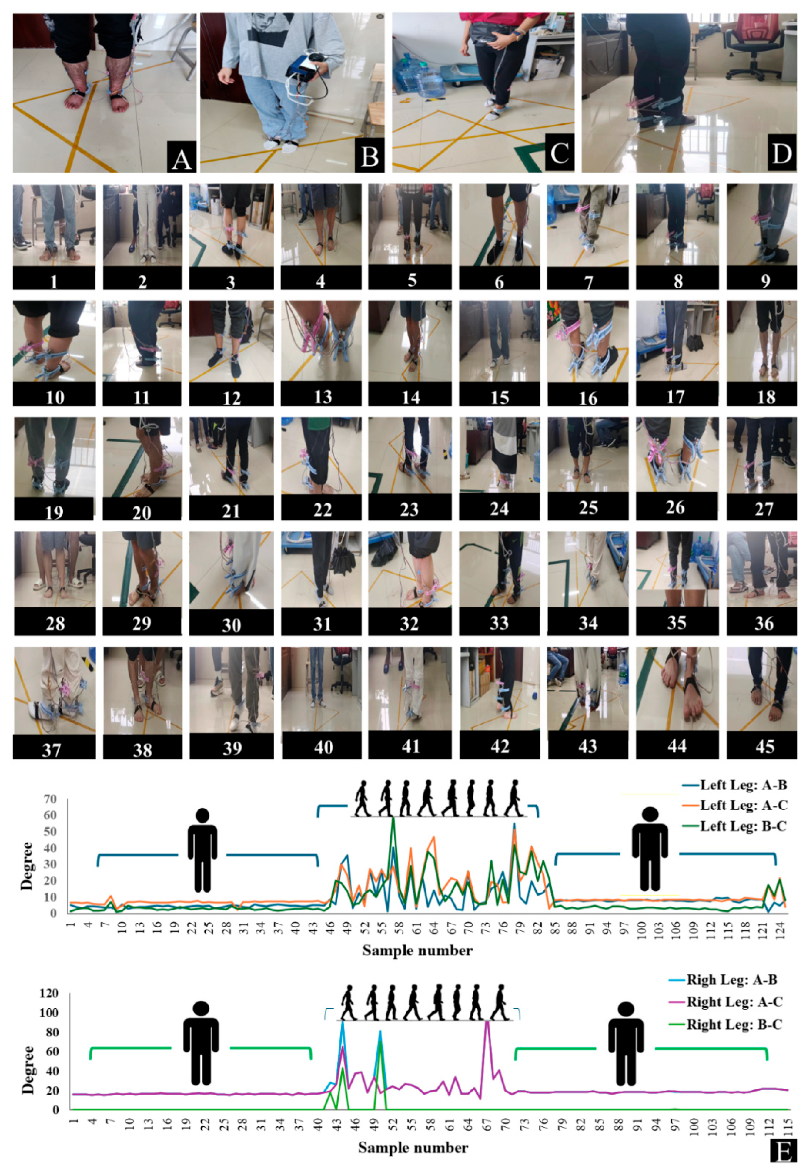 Figure 8. This implies that the number of sensors could be optimized in certain designs. For instance, sensor B, which is located on the Gastrocnemius muscle, could potentially be removed without compromising data quality.
