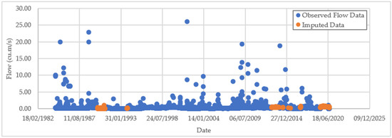 The complete daily flow time series, including imputed values, is presented in Figure 3, illustrating the effectiveness of the proposed model in reconstructing continuous hydrological records.