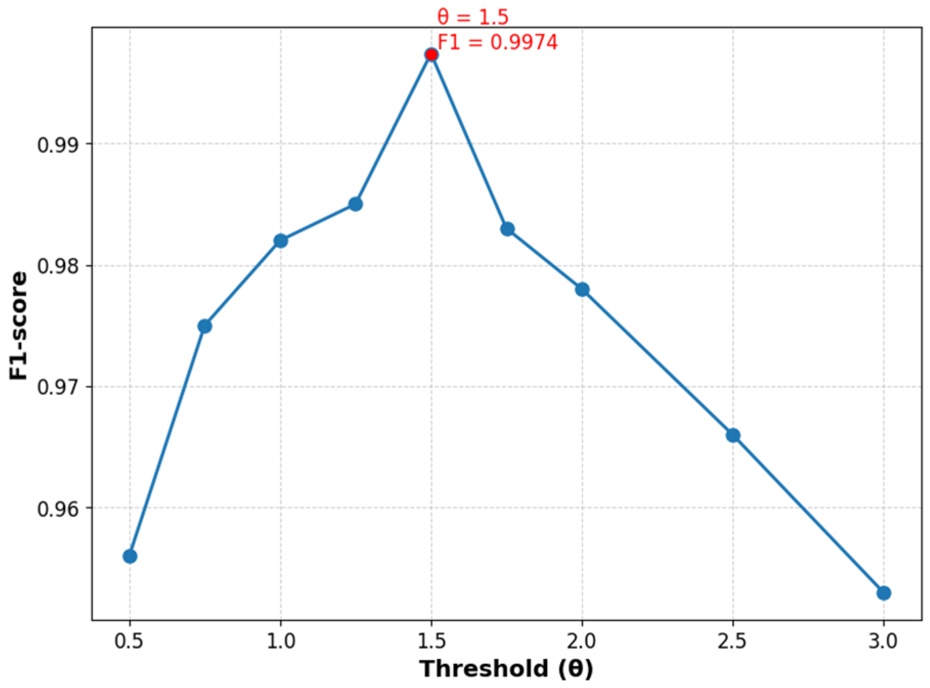 ℓ = 2) obtained notable advantages over the baseline. Anomaly localization latency was improved by 60% (from 1200 ms to 480 ms on graphs with ∼5000 nodes) while preserving near-flawless detection accuracy (0.9993 → 0.9975). Robustness against noise had a significant improvement and F1-score increased from 0.95 to 0.97, when it was evaluated under the simulated Gaussian noise with 10% additive. More importantly, the incorporated k-metric anti-dimension lowered the success rate of re-identification attacks from 68% to 28% (absolute reduction: 40%), demonstrating satisfactory privacy protection with negligible detection accuracy loss. This experimental evidence, summarized in