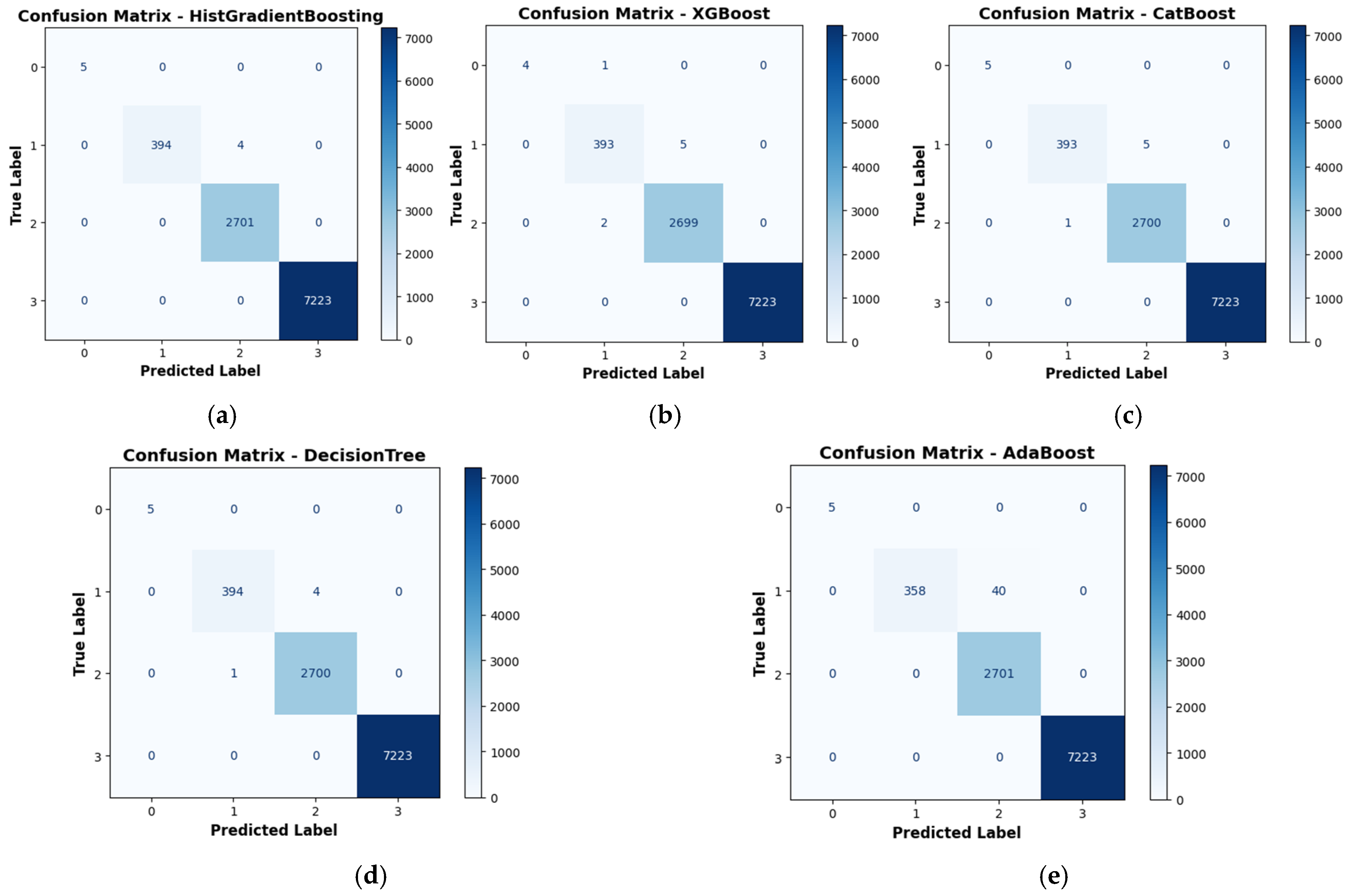 Figure 11) and McNemar’s test on misclassifications indicate CatBoost reduces errors by 25–50% compared to AdaBoost (
