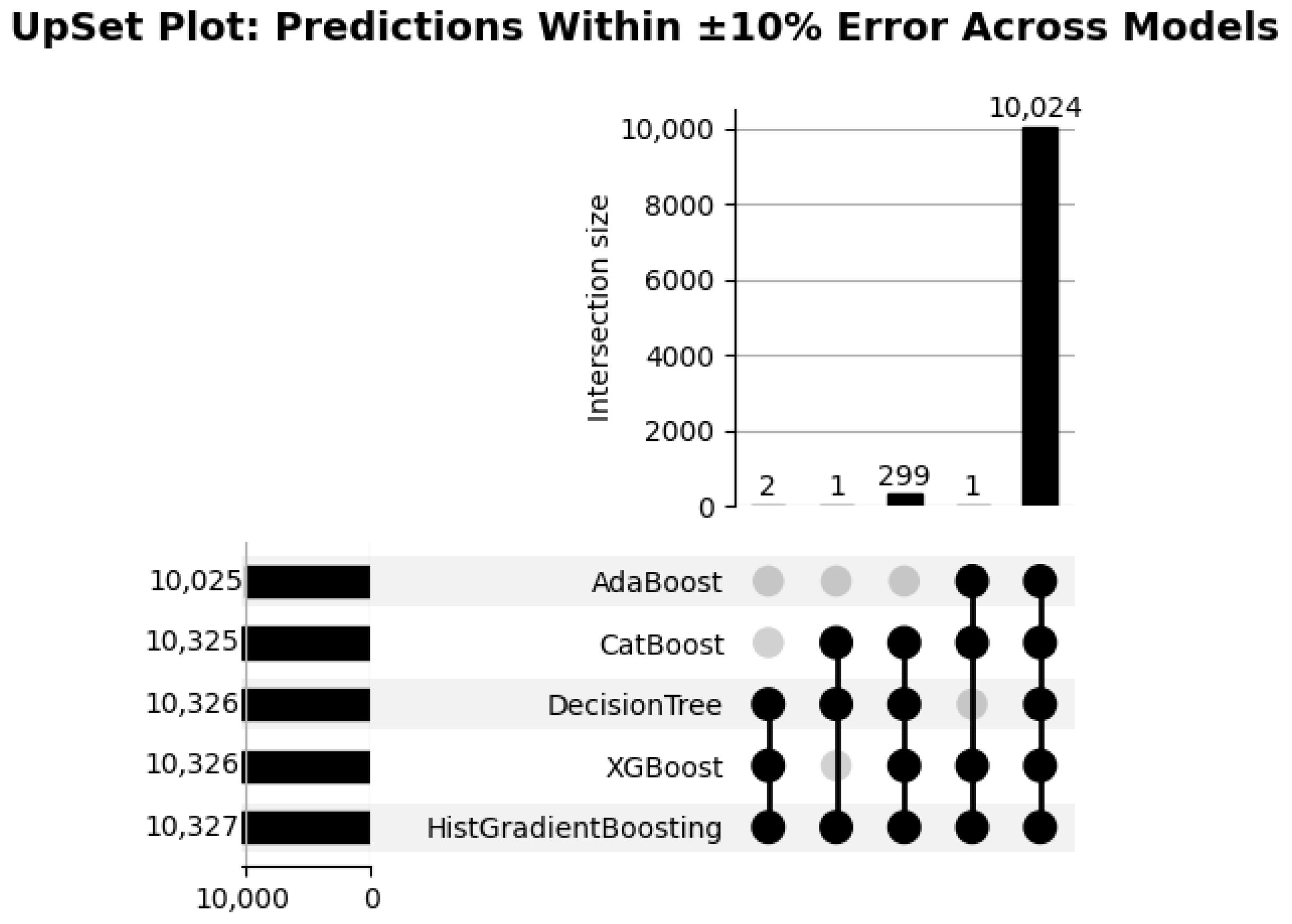 Figure 18 highlight high prediction agreement (10,024 overlaps), with Jaccard similarity >0.95 among ensembles.