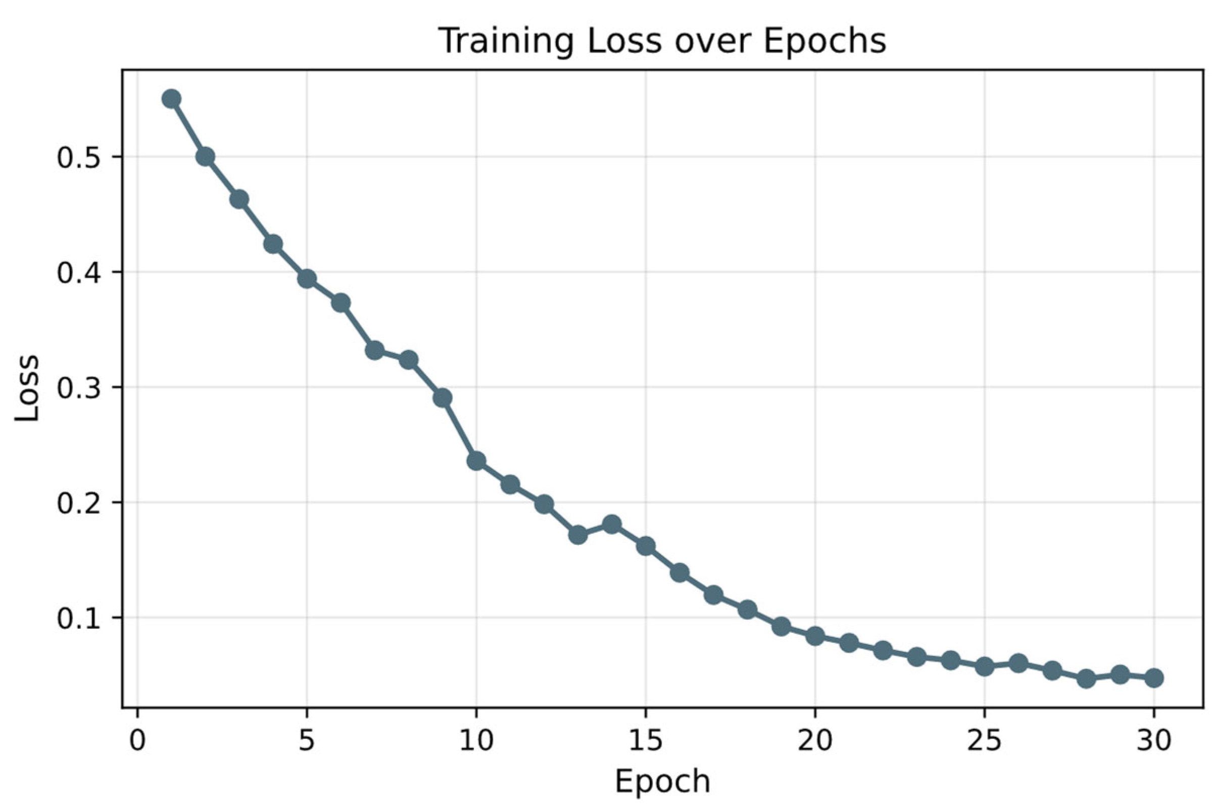 Figure 3). The initial classification accuracy reached 81.25% with a loss of 0.5502 in the first epoch, and accuracy improved steadily to 100% by the 13th epoch, accompanied by a continuous decrease in training loss to 0.0475. These results demonstrate that chemically informed feature representations enable effective discrimination between the two glass types.