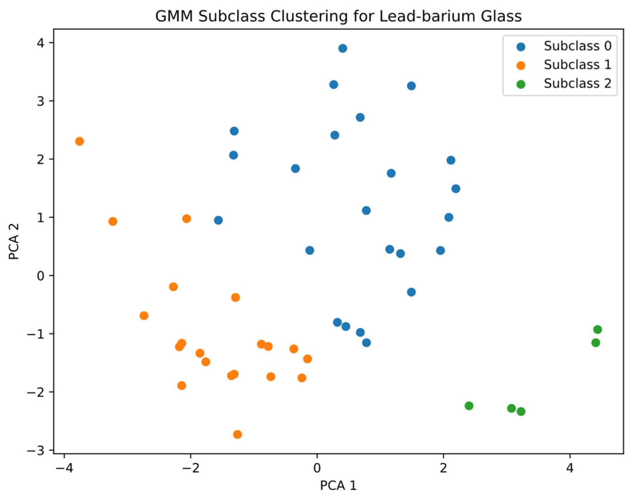 Using lead-barium glass as a case study, Gaussian Mixture Models (GMM) were employed to investigate potential subclass structures. As summarized in