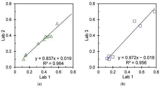 A comparison of results obtained from multiple laboratories was made by considering potential errors or discrepancies resulting from testing methods and equipment variations as shown in Figure 8. Standardizing protocols, procedures, and testing standards across laboratories is necessary to minimize variations and enable proper comparison. Calculating measurement uncertainty for each laboratory is crucial for comparing results, as it provides a measure of confidence in the accuracy of the measurements. This approach helps identify significant differences in precision or accuracy between laboratories and determines if they fall within acceptable ranges.