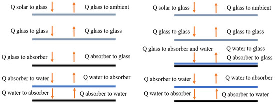 (b) The heat transfer radiated into the environment from the transparent cover of the still is considered to be negligible due to the “interlayer” and is not taken into account;