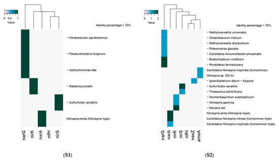 Detection of denitrification and nitrification functional genes in sediment samples S1 and S2.