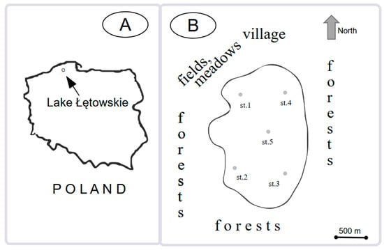 - Brodzińska, B.; Jańczak, J.; Kowalik, A.; Lamparska, A.; Rekowska, J.; Sziwa, R. Atlas Jezior Polski; Tom II [The atlas of Polish Lakes; Volume II]; Jańczak, J., Ed.; Scientific Publisher: Poznań, Poland, 1997; p. 256. [Google Scholar]
