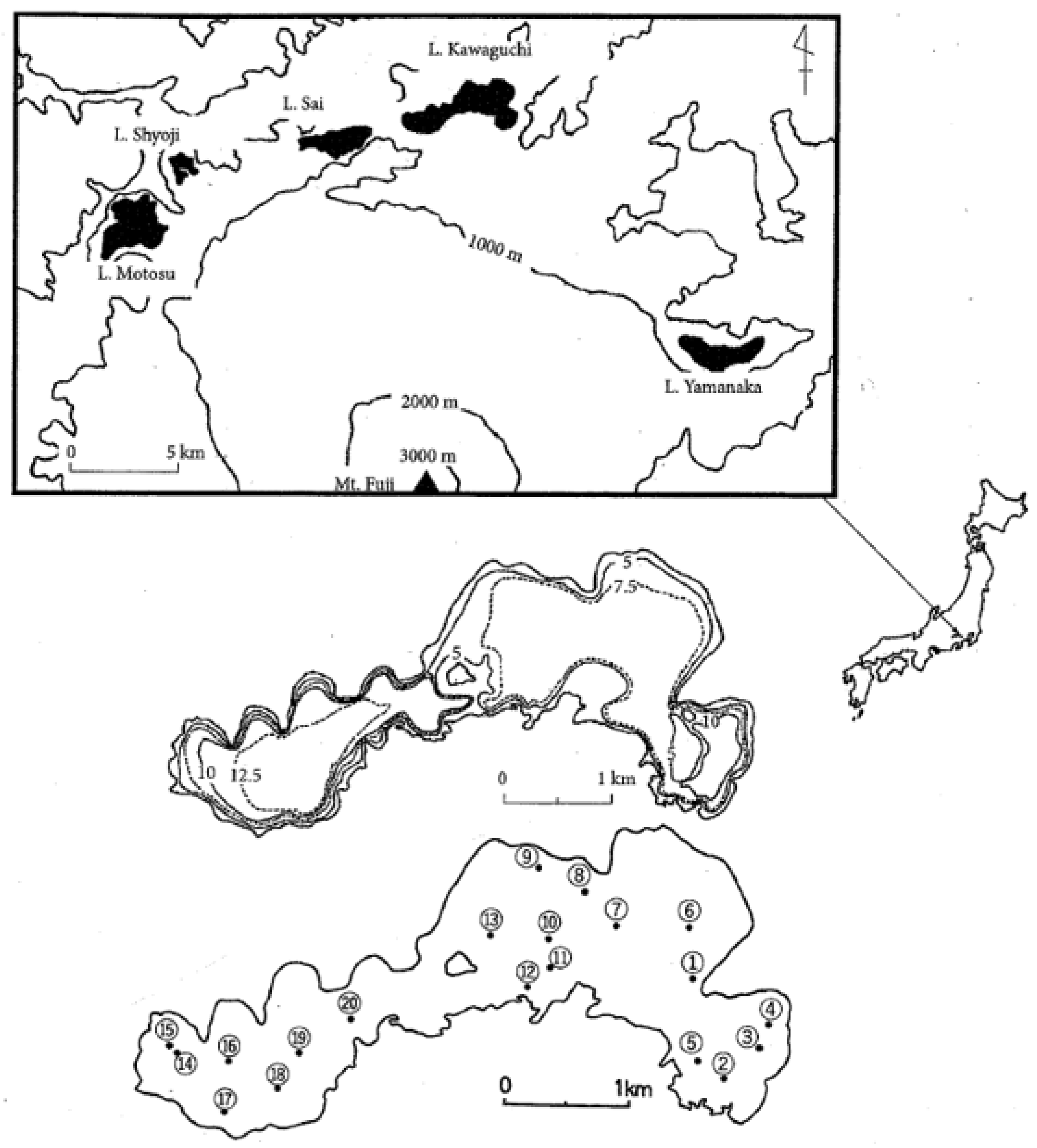 Hirabayashi, K.; Takeda, M. Long-Term Eutrophication in Mesotrophic–Eutrophic Lake Kawaguchi, Japan, Based on Observations of the Horizontal Distribution of Profundal Chironomid Larvae and Oligochaetes. Limnol. Rev. 2025, 25, 53. https://doi.org/10.3390/limnolrev25040053