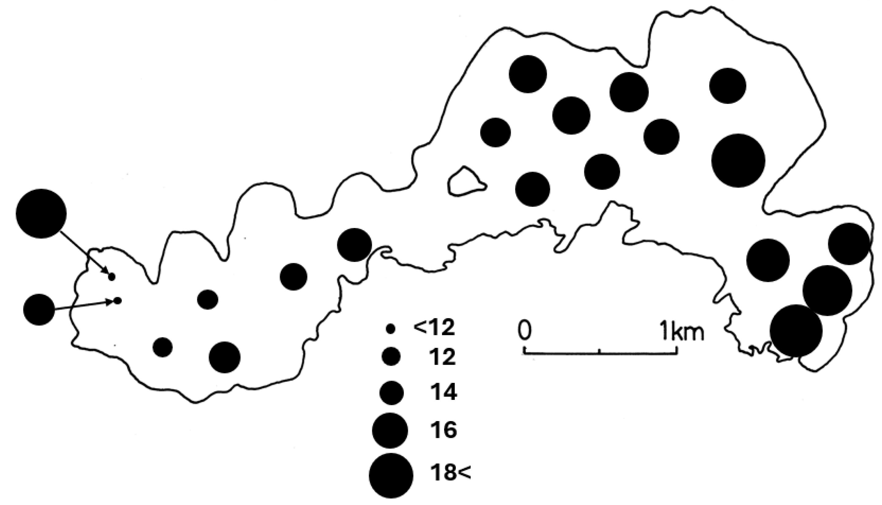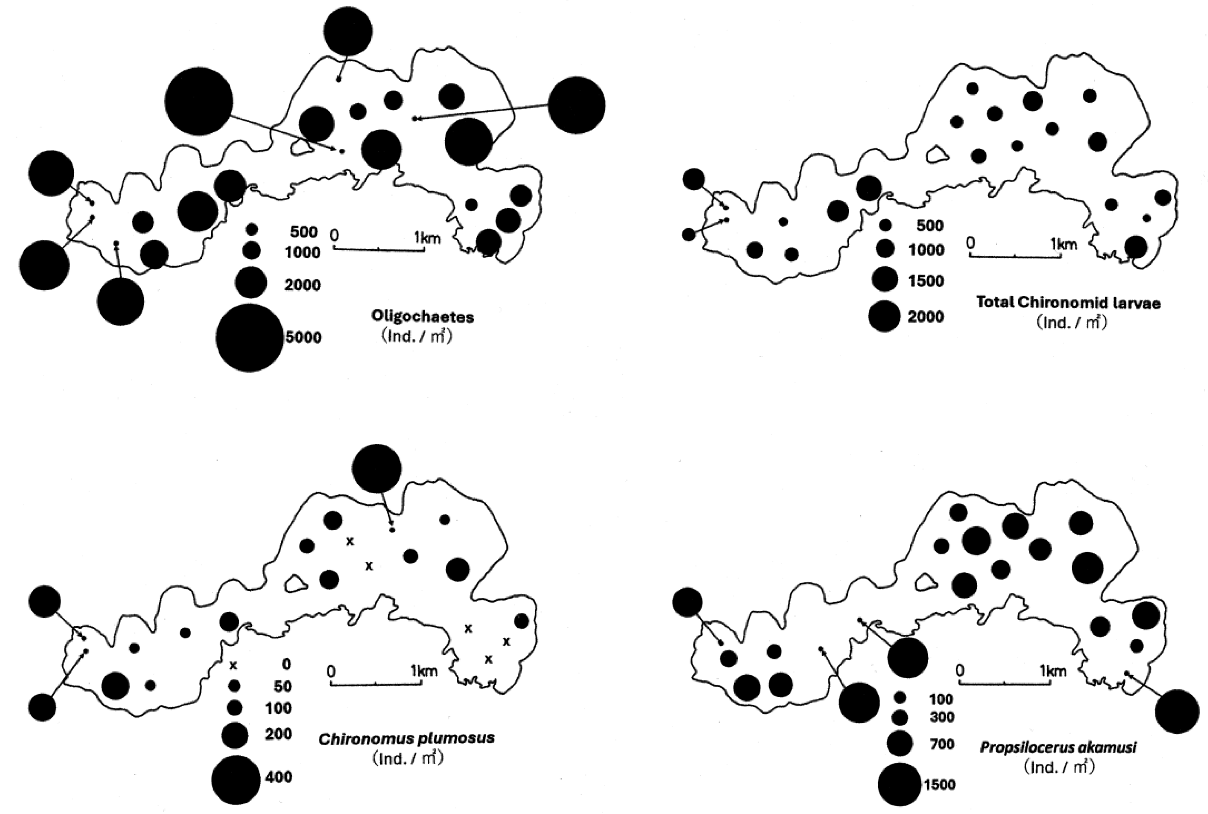 - Hirabayashi, K.; Yoshizawa, K.; Horiuchi, M. Horizontal distribution of benthic macroinvertebrates in Lake Kawaguchi, Japan. Rep. Suwa Hydrobiol. 1995, 9, 121–129. [Google Scholar]