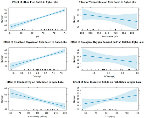 General Linear model plot showing the influence of environmental variables on fish catch in Egbe Lake.